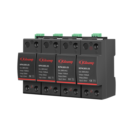 科安Ⅰ級(jí)交流電源電涌保護(hù)器(SPD)主要用于配電系統(tǒng)一級(jí)防護(hù)(可通過10/350μs波形的電流沖擊),保護(hù)電氣電子設(shè)備免受雷電電磁脈沖感應(yīng)電壓、操作瞬態(tài)和諧振(<100μs)過電壓的影響,廣泛應(yīng)用于通信設(shè)備、電氣、電器、電力設(shè)備、安防監(jiān)控、交通、工控、航空等領(lǐng)域電源保護(hù)??瓢布夹g(shù)KPA385-25/KPA385-50系列產(chǎn)品采用模塊化設(shè)計(jì)、溫控?cái)嗦芳夹g(shù)、火花間隙技術(shù)等,實(shí)現(xiàn)過流保護(hù)、瞬間動(dòng)作、及時(shí)脫扣,可有效避免火災(zāi)及防止浪涌對(duì)系統(tǒng)或設(shè)備造成永久性損害或瞬間中斷等危害,提高配電系統(tǒng)的安全性和穩(wěn)定性。